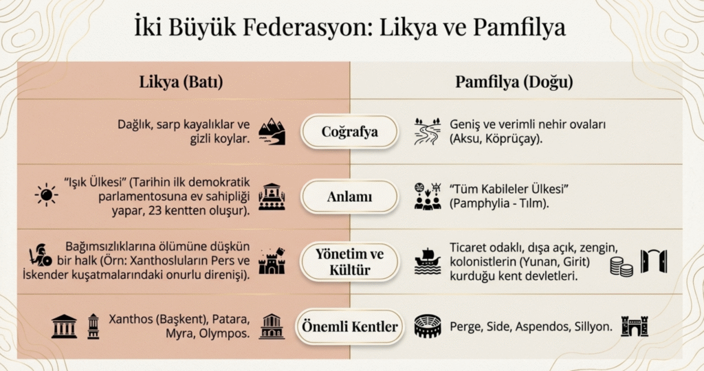 Göçebe bir yaşamdan yerleşik bir topluma geçişin MÖ 10 bin izlerini taşıyan Antalya özellikle MÖ 2 bin yılından başlayarak çok sayıda ulusa; Hitit, Pamphilia, Lykia, Kilikya gibi kent devletleri ile Pers, Makedonyalı Büyük İskender, Antigonos, Ptolemais, Selevkos ve Bergama Krallığı vb.– ev sahipliği yapmıştır.