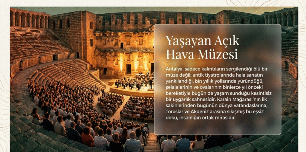 Karain Mağarası’ndan başlayarak kent ve çevresinde yaşayan pek çok uygarlığın ayak izlerine ve anıtlarına rastladığımız Antalya’da öne çıkan tarihi kalıntılardan bazıları;