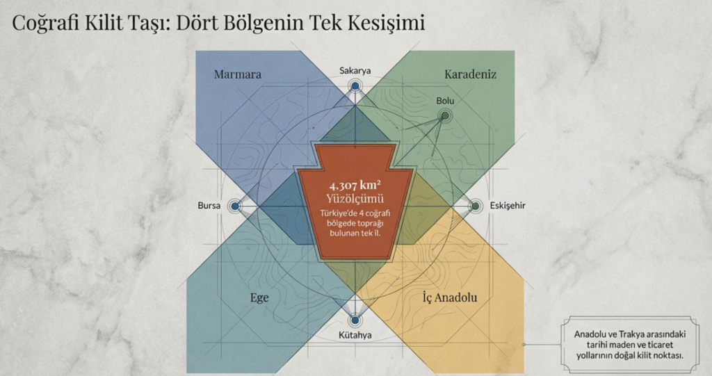 Ülkemizde dört coğrafi bölgede-Marmara, Ege, Karadeniz, İç Anadolu- toprakları bulunan tek il Bilecik, Sakarya, Bursa, Kütahya, Eskişehir ve Bolu illeriyle komşudur.