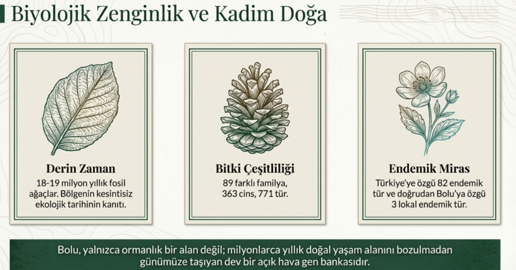 Bolu, 18- 19 milyon yıllık fosil ağaçlar, çok çeşitli bitkiler ve yaban hayvanları bakımından son derece zengin, doğal yaşam alanını hala koruyan illerin başında gelmektedir.
