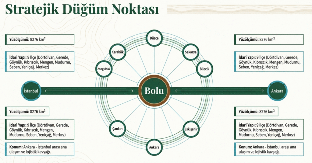 1923 yılında da Türkiye Cumhuriyeti’nin ili olan Bolu, Akdeniz, Karadeniz, Doğu ve İç Anadolu’yu Marmara’ya özellikle İstanbul’a bağlayan önemli bir kavşaktır.