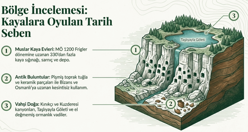 Bolu’nun çok güzel ve sakin ilçelerinden Seben’in tarihi Frigler dönemine ait kayalara oyulmuş barınaklarıyla MÖ 1200 yıllarına kadar gitmektedir.