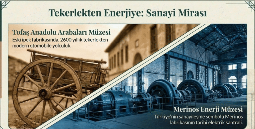 Umurbey Mahallesi’nde yer alan, 17 bin 000 m2 alana yayılan önceleri bir ipek fabrikası işlevi gören Türkiye’nin ilk ve tek Anadolu Arabaları Müzesi, 2002 yılında açılmıştır.