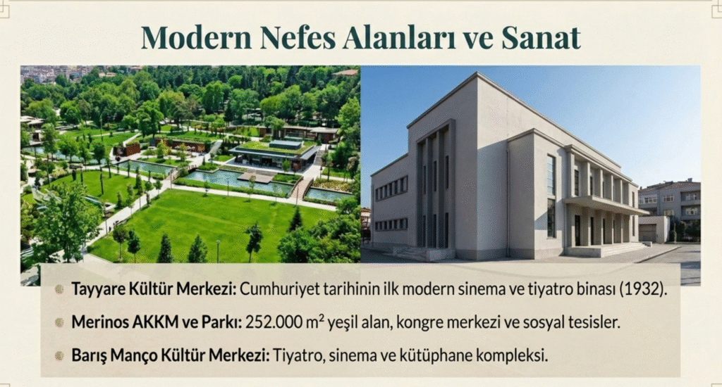 1938’de dokuma fabrikası olarak kurulan Merinos, Merinos Elektrik Santrali bünyesinde yer almaktadır.