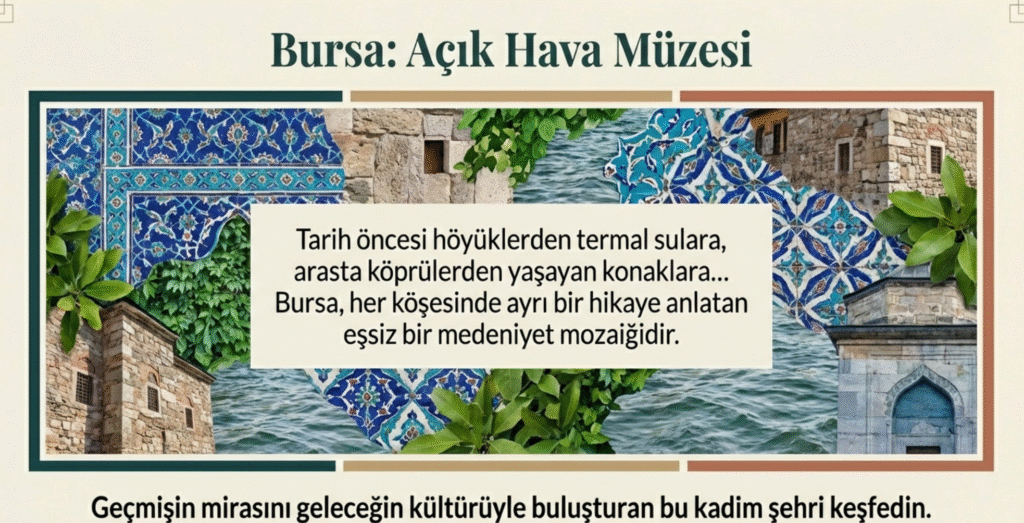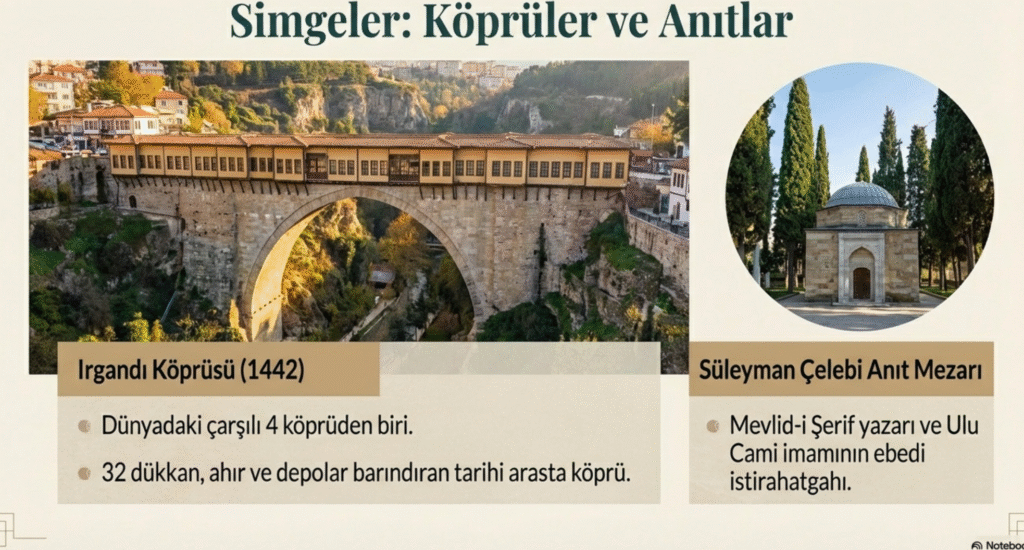 BURSA/ Hamamlar, Hanlar, Çarşılar, Müzeler, Kütüphane, Parklar, Bahçeleri, Köprüler, Kuleler ve Anıt Mezar