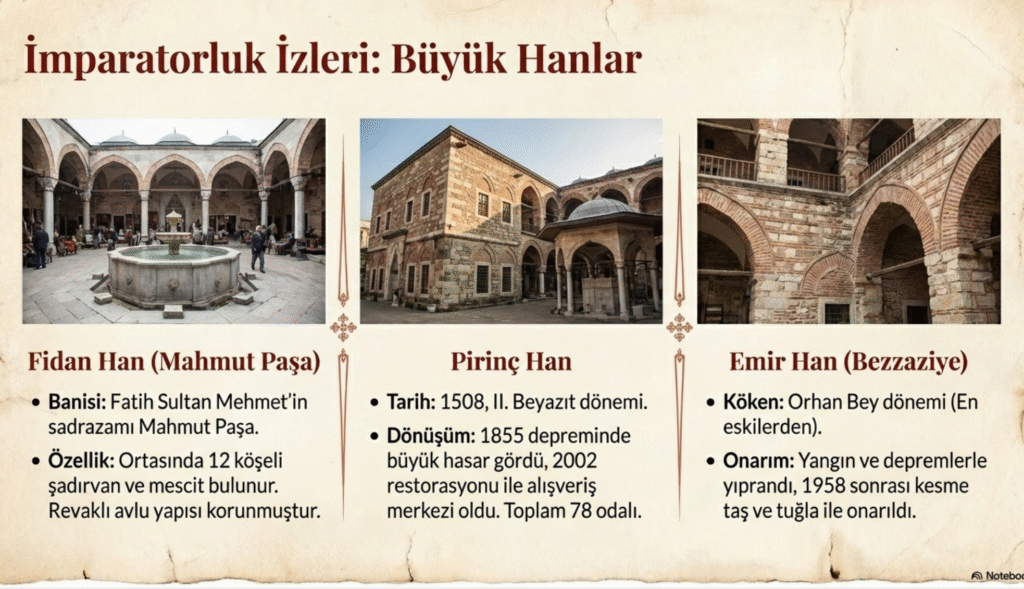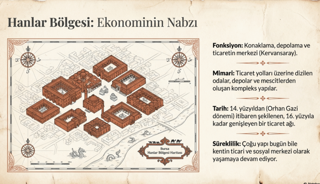 Osmanlı’nın ilk başkenti Bursa’da da özellikle 14. yy’ dan sonra çok sayıda han yapılmıştır.