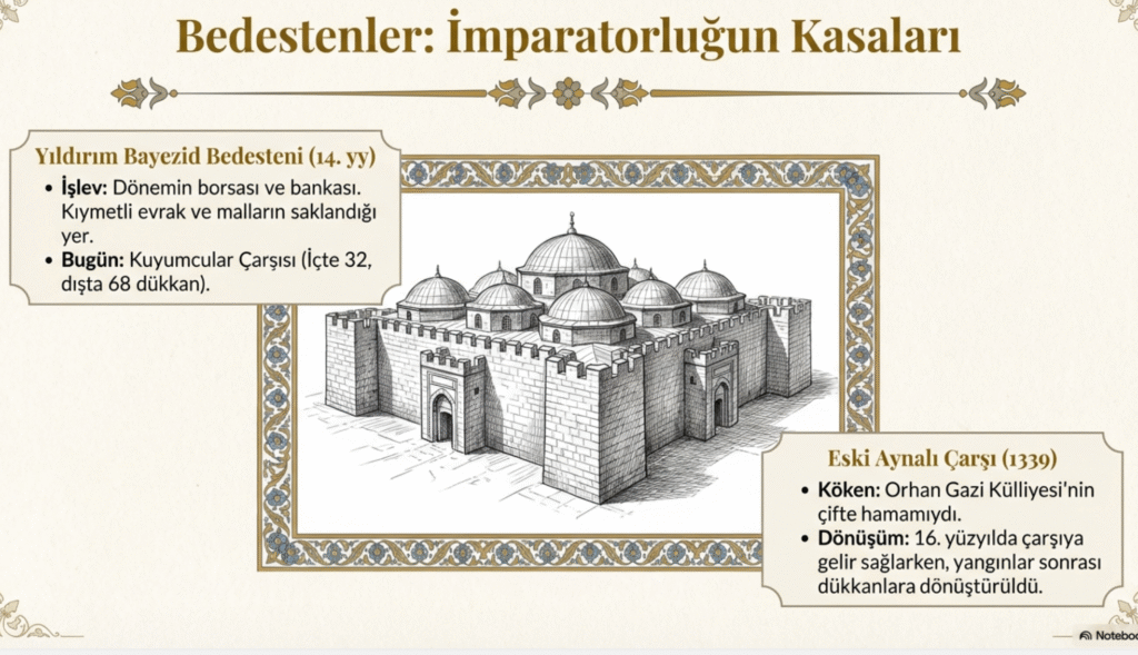 Kapalı Çarşı yakınındaki Osmanlı döneminin ilk bedesteni olan yapı, 14. yy.’da Bayezid tarafından yaptırılmıştır.