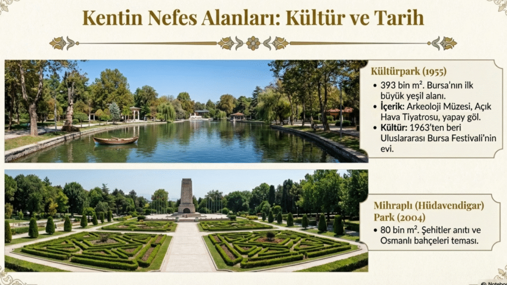 Bursa’nin düzenlenmiş ilk büyük yeşil alanı 393 bin m2’lik alanı kaplayan park, 1955 yılında hizmete açılmıştır.