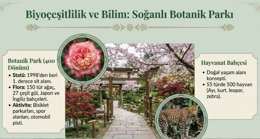 1998 yılında hizmete açılan Botanik Park ve Bursa Hayvanat Bahçesi, yöre hayvanlarının doğal yaşam alanı olarak düzenlenmiştir. Barınaklara da sahip parkta 55 türde 500 hayvan- ayı, kurt, aslan, leopar, yırtıcı kuşlar, lama, yaban eşeği, deve, maymun, deve kuşları, zebra, su kuşları- bulunmaktadır.