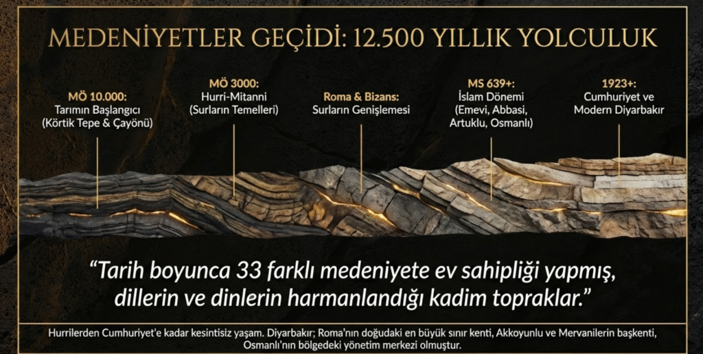 İlk çağlardan beri 33 farklı uygarlığın yerleşim yeri, ticari ve kültürel merkezi olan Diyarbakır, Roma’nın doğudaki en büyük sınır kenti, Akkoyunlu ve Mervaniler’in başkenti, Osmanlı’nın da 25 merkezi yöneten en büyük eyaleti olarak tarihte çok az yerleşim yerinde görülen ayrıcalıklı bir kent olmuştur.