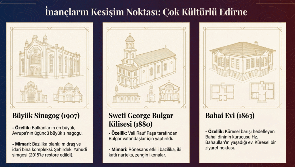 1907 yılında ibadete açılan Edirne Sinagogu, Kaleiçi Semti’nde yer almaktadır.