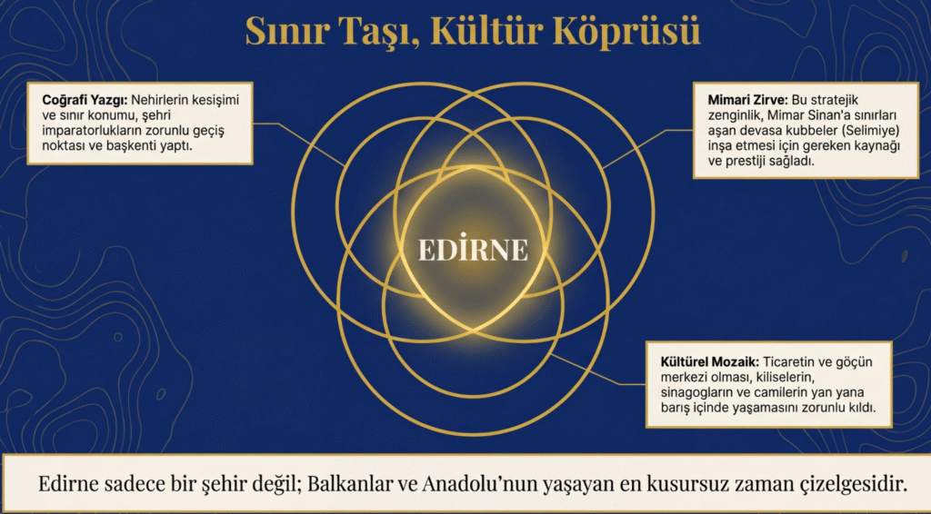 Avrupa- Asya yol güzergâhında yer alan Edirne, tüm uluslar tarafından önemli ticari, askeri ve kültürel bir merkez olmuştur.