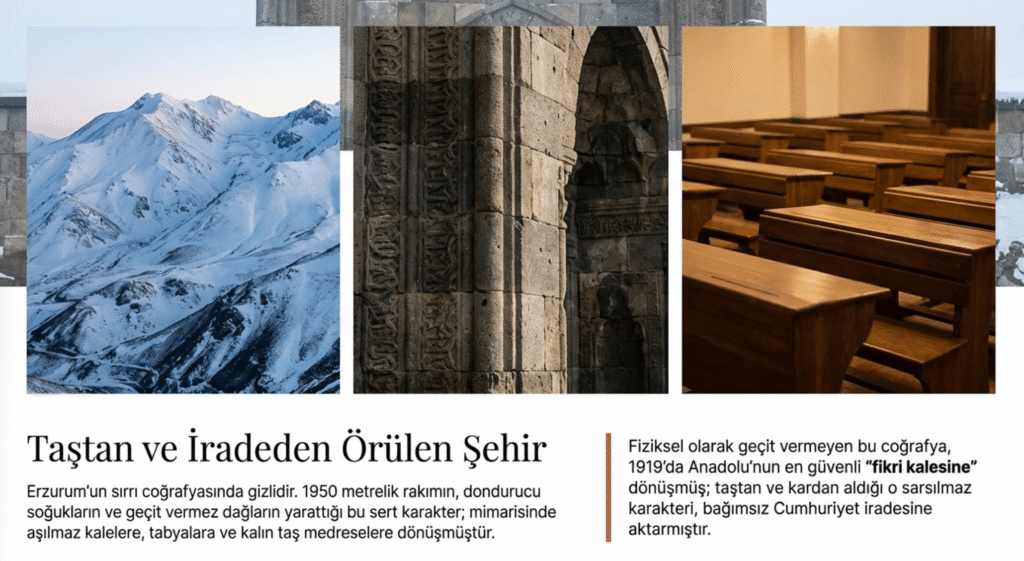 Pek çok uygarlığa ev sahipliği yapan Erzurum diğer illerden ayrıcalıklı olarak yeni bir uygarlığın doğumuna da şahitlik etmiş bir kenttir.
