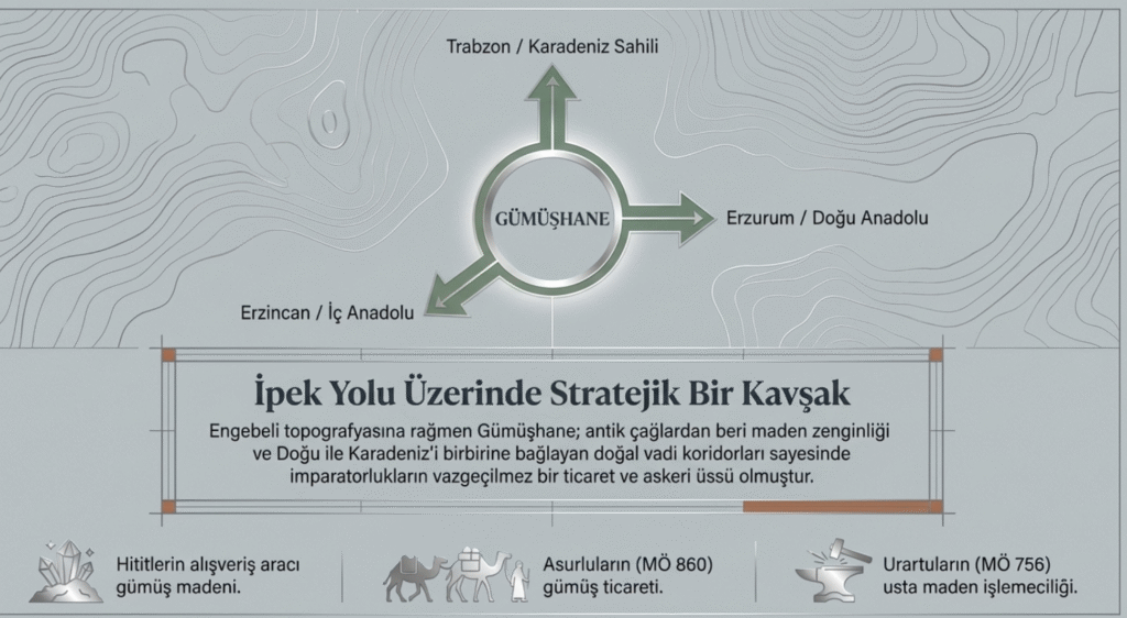 İpek Yolu üzerindeki konumu nedeniyle Anadolu’nun önemli kavşak kentlerinden biri olan Gümüşhane ve çevresinin tarihinin MÖ 3500- MÖ 3000 ilk tunç çağına kadar gittiği ve o dönemden beri bölgede tarım faaliyetlerinin yapıldığı arkeolojik çalışmalarla ortaya çıkarılmıştır.