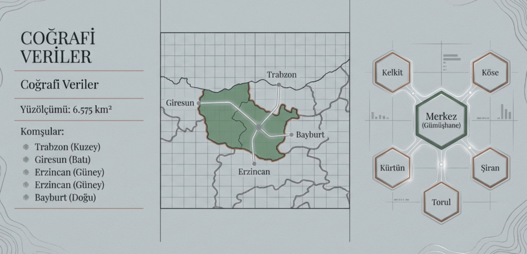 İlçeler Kelkit, Köse, Kürtün, Şiran, Torul ve Merkez ilçe Gümüşhane
