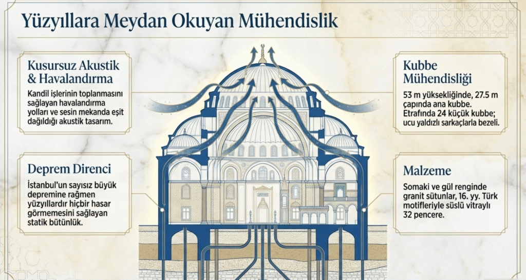 Ayrıca caminin değerini artıran niteliklerinden biri de İstanbul’un yüzyıllar boyunca pek çok deprem geçirmesine karşın yapının hiç zarar görmemesidir.