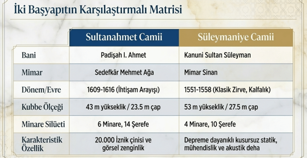 Süleymaniye Cami’nin çeşitli özellikleri –yapının içinde kullanılan somaki ve gül renginde granit sütunlar, mermer mihrabın 16. yy. renkli, Türk motifleri ile süslü vitrayları, çiniyle kaplı nişleri, sade balkonları, Sultan locası, Kur’an ayetleri, kaligrafları, bronz kafesli bölme, estetiği, tekniği, akustiği, havalandırma yolları, açıklığı, genelin bütünlüğü, ölçülü süslemelerinin uyumu– ile İstanbul’un son derece göz kamaştırıcı bir başyapıtıdır.