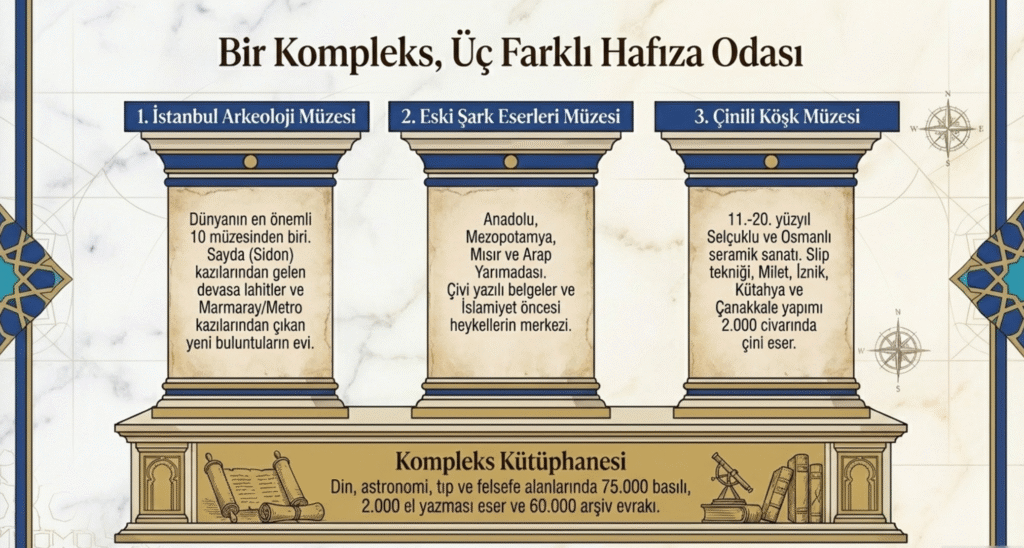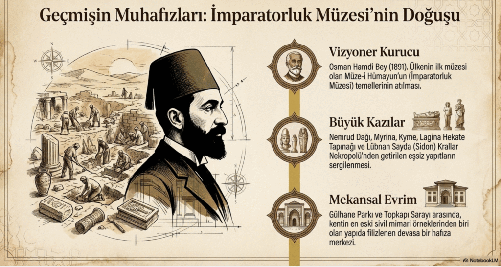İstanbul Arkeoloji Müzeleri, Sultanahmet’te, Gülhane Parkı ve Topkapı Sarayı arasında yer alan, 1891 yılında, Osman Hamdi Bey tarafından açılan ülkenin ilk müzesi, Müze-i Hümayun- İmparatorluk Müzesi adıyla -önce üç farklı yerde, üç farklı içerik ve adla – Arkeoloji Müzesi, Eski Şark Eserleri Müzesi ve Çinili Köşk Müzesi – açılan yapı, kentin en eski sivil mimarı örneklerinden biri olarak kabul edilmektedir.