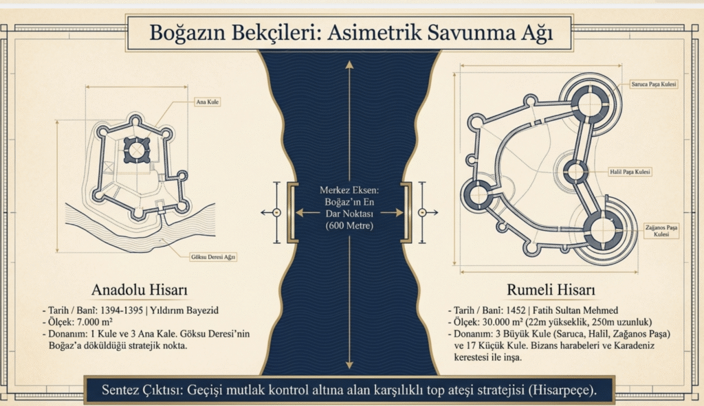 Anadolu Hisarı, Akça Hisar, Yeni Kale ve Güzelce Hisar yapılar topluluğu, Boğaz’dan geçişleri kontrol etmek amacıyla, Osmanlı kale mimarisine uygun olarak 7 bin m2 alana inşa edilmiştir.