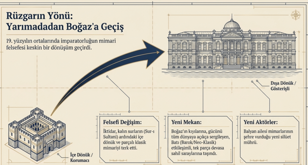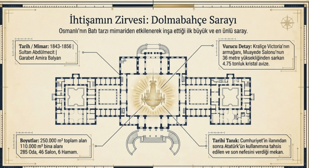 Beşiktaş’ta, 17. yy. dan beri denizin doldurulmasıyla oluşan koyda, önce Çinili Köşk, daha sonra Beşiktaş Sarayı’nın yerine 31. Osmanlı Padişahı, Sultan Abdülmecit tarafından Mimar Garabet Amira Balyan’a 1843-1856 yılları arasında, 19. yy. dünyanın en ünlü sarayı yaptırılmıştır.