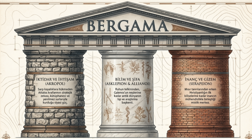 Tarihsel süreç içinde pek çok ulusa mekân olan Bergama, en parlak dönemini İskender’in generallerinden Batı Anadolu’yu ele geçirirken ganimetleri kente taşıyan MÖ 301 Lysimakhos ve serveti idare eden Philetairos döneminde yaşamıştır. Philetairos ’un MÖ 281-MÖ 263 yılında ölümüne kadar yaklaşık 150 yıl kent başta tapınaklar olmak üzere çok sayıda yapı ve yapıtla donatılmıştır.