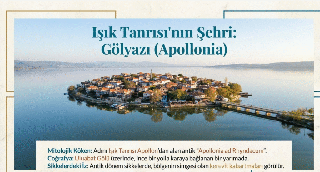 Apollonia ad Rhyndacum adını içinden geçen Ryndacus (Kocaçay) Irmağı ile Işık Tanrısı Apollon’dan alan kentte MÖ 1. yy.’da kerevit kabartmalı sikkeleri basılmaktaydı.