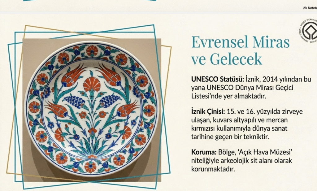 İznik, 2014 yılından bu yana UNESCO Dünya Mirası Geçici Listesi’nde yer almaktadır.