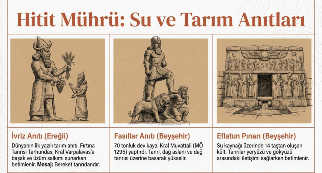 Tuvana Krallığı Başkenti Ereğli’ye 12 km uzaklıktaki Halkapınar- İvriz Barajı’nda yer alan dünyanın ilk yazılı tarım anıtı olduğu varsayılan 4.20 mx 4.20 m boyutundaki bir kabartma, MÖ 727- MÖ 742 geç Hitit dönemi sanatının en güzel örneklerindendir.