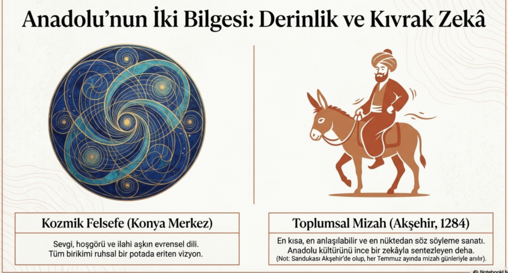Bunların içinden bazıları belki de teki tüm bu birikimi bir potada eriterek en kısa, en anlaşılabilir, en çabuk kabul görür, en nüktedan söyleyen kişisi Nasreddin Hoca, Akşehir’de 1284 yılarında yaşamış bir söz söyleme ustası-dehasıdır.