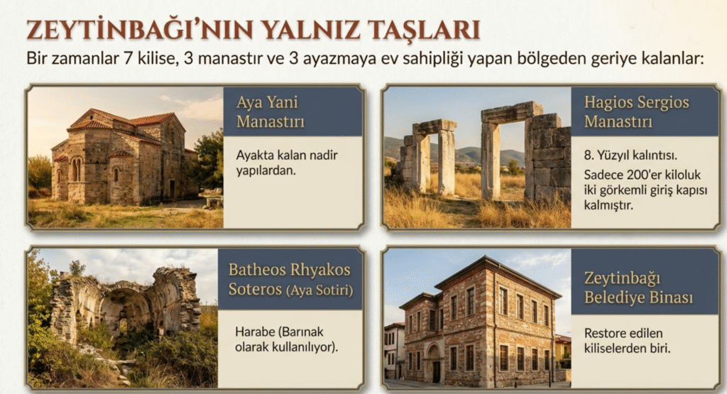Bu kiliseden ayrı bölgede Zeytinbağı’nda yedi kilise, üç manastır ve üç de ayazma (kutsal kaynak) bulunmaktaydı. Ancak kiliselerden üç tanesi ve üç manastırdan da sadece Aya Yani Manastırı günümüze ulaşabilmiştir.