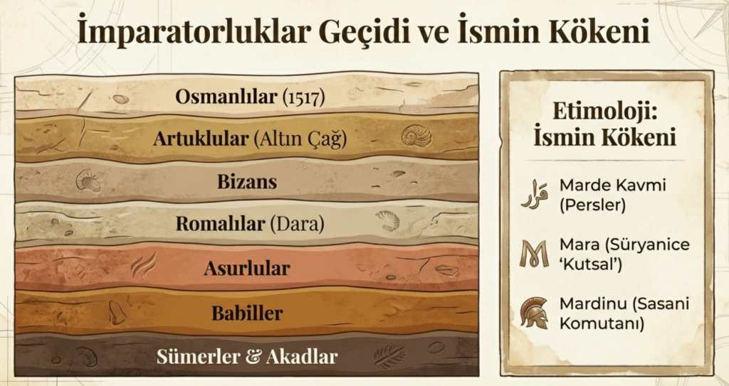 Perslerin Marde Kavmi’den mi Süryanice kutsal anlamına gelen Mara sözcüğünden mi yoksa Sasani komutan Mardinu’dan mı? aldığı konusu netliğe kavuşamamıştır.
