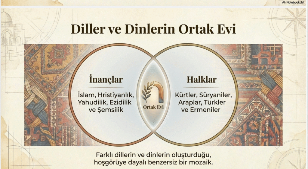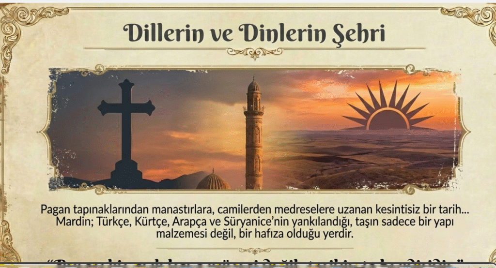 Bereketli Hilal, iki nehir arasında verimli ovanın merkezinde doğal kale şeklindeki bir dağın tepesine kurulan Mardin tarihin derinliklerinden getirdiği çok kültürlü, ve çok dinli (İslam, Hristiyanlık, Yahudilik, Ezidilik ve Şemsilik) çok kökenli (Kürtler, Hristiyan Süryaniler, Sünni Araplar, Türkler, Yezidiler ve Ermeniler)Mardin, Cumhuriyet’in ilanından sonra il olmuştur.