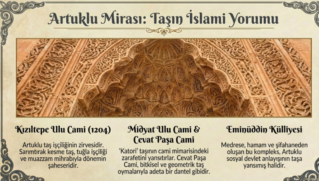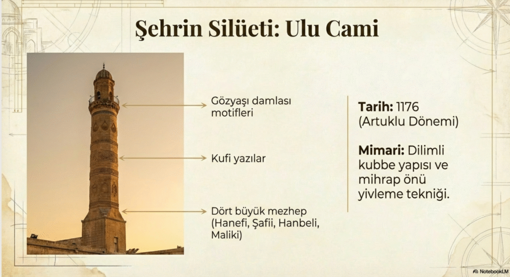 Kesme taştan inşa edilen halen Mardin’in sembolü caminin Artuklu Dönemi, Artuklu Sultanı Kutbettin İlgazi tarafından 1176 olarak yapıldığı on altı kitabesinden anlaşılmaktadır.