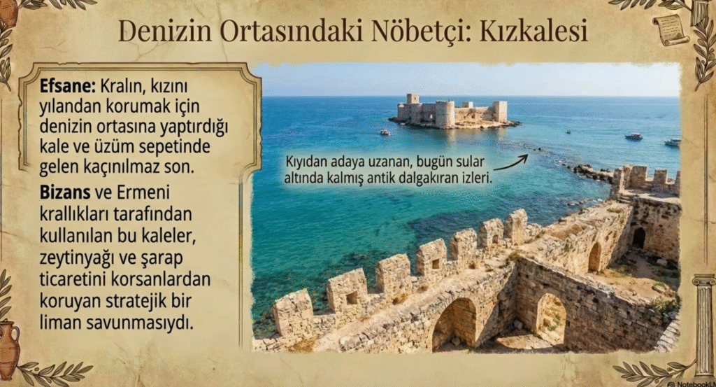 Mersin’in batısında yer alan tarihi kentte Karamanoğulları döneminden kalan iki türbe, Lalaağa Cami ve Kızıl Minare, Selçuklu Nuri Sofi Türbesi dikkat çeken yapılardır.