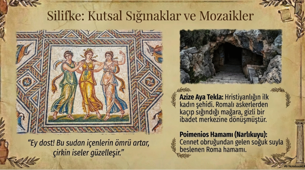 Taşucu’na 4 km, Silifke’ye 5 km uzaklıktaki mağara önce Hıristiyanlar sonra da Müslümanlar tarafından kutsal sayılmıştır.