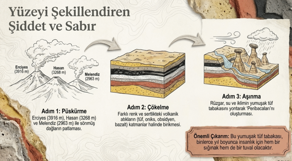 Volkanik atıkların- taş, onyx, çakmak taşı, bazalt, tüf vb.-dolmasıyla oluşan Göreme Vadisi’nde tarihi MÖ 3000’li yıllara kadar giden pek çok uygarlık- Hitit, Asur, Pers, Lidya, Med, Makedon, Roma, Bizans, Selçuk, Osmanlı– yaşamıştır.