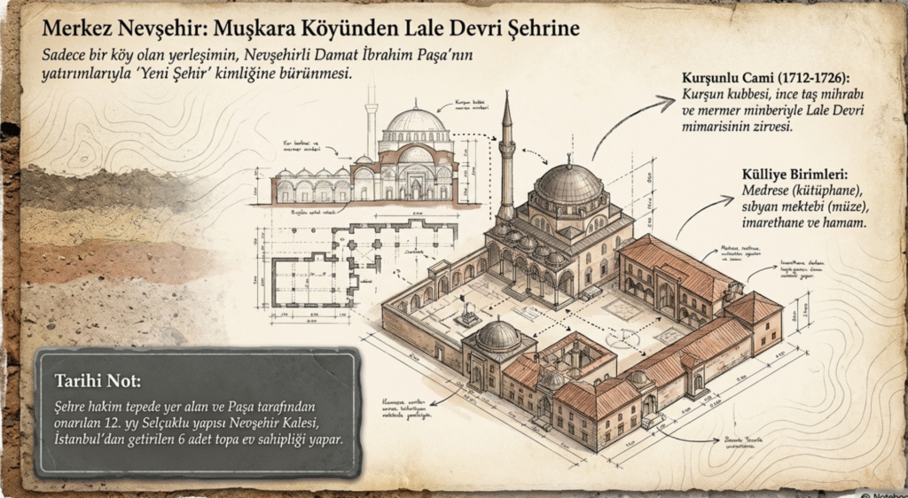 Nevşehir, uzun yıllar sadece köy olarak kalmış Osmanlı Dönemi’nde ailesi bu köyden olan III Ahmet’in veziri Damat İbrahim Paşa zamanında kent ve çevresi bölge geneline göre daha ön plana çıkarak gelişmiş, büyümüştür.
