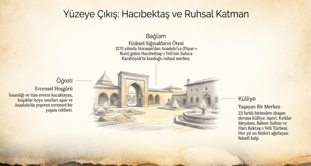 1270 yılında Horasan’dan Anadolu’ya göç eden büyük düşünür ve Hakk insanı Hacıbektaş-ı Veli pek çok yerde verdiği molalardan sonra ikametgâh olarak o dönemki adıyla Suluca Karahöyük’ü seçmiştir.