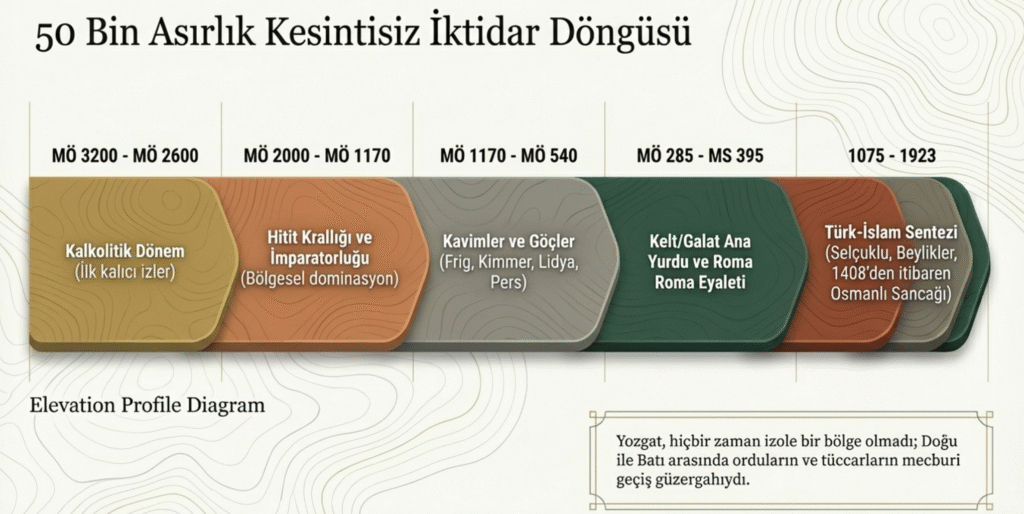 İç Anadolu’nun Karadeniz’e geçiş noktasında bulunan Yozgat ve çevresinde daha sonra MÖ 1460- MÖ 1170 Hitit İmparatorluk döneminden sonra Sami ırkının bir dönem bölgeden geçtiği yine çalışmalarla konulmuştur.